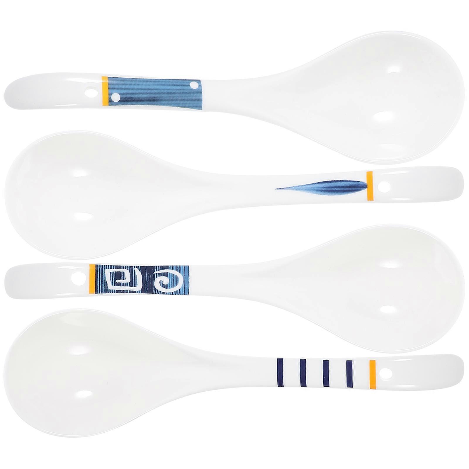 Vintage Ceramic Soup Spoon Large Spoon For Adults Ramen Serving 23X6.5CM Microwave Safe 4Pcs