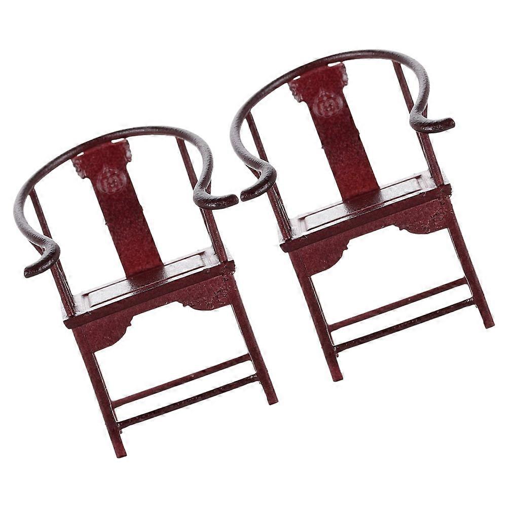 Vintage Design Miniature Retro Furniture Dining Chair Model For Doll House Accessory Dark Brown 3.80X2.30X1.90CM Decoration 2Pcs