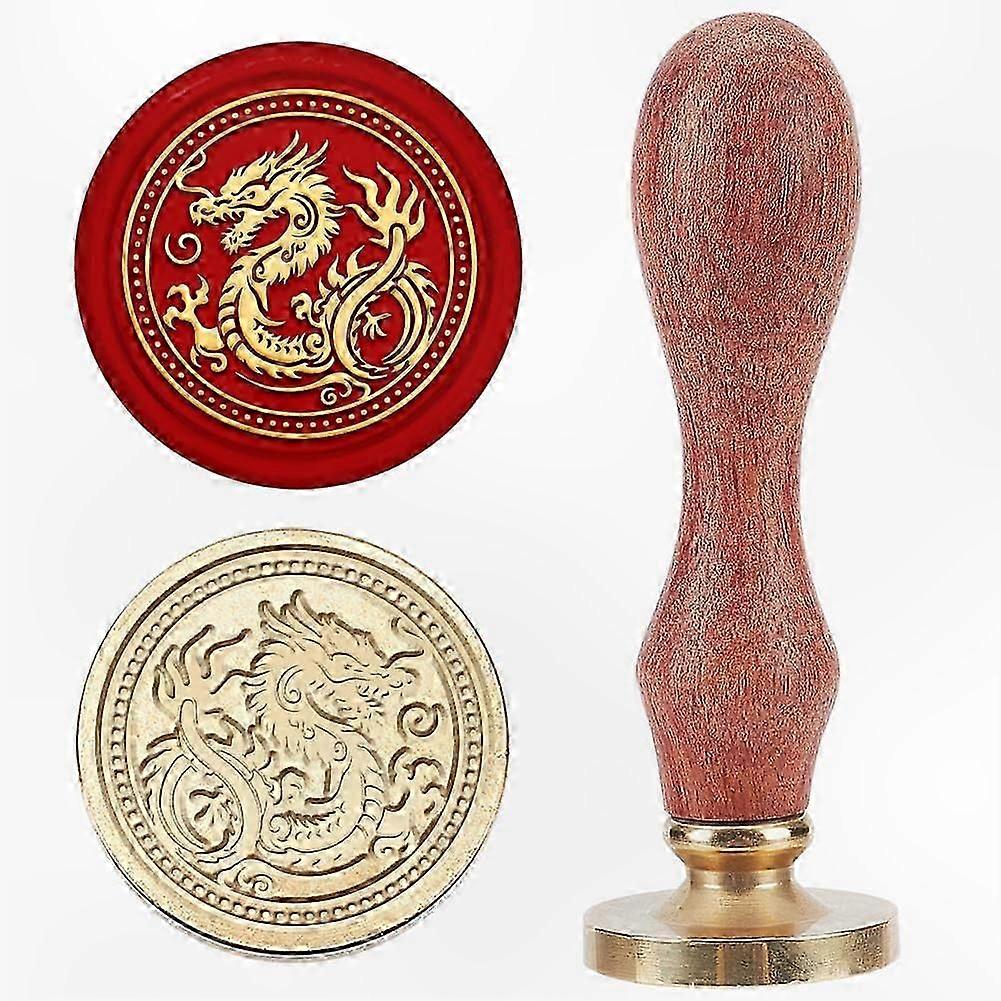 Vintage Dragon Wax Seal Stamp 25mm Antique Animal Design Brass Head with Wooden Handle for Wine Gifts Party Invitations Crafting Projects