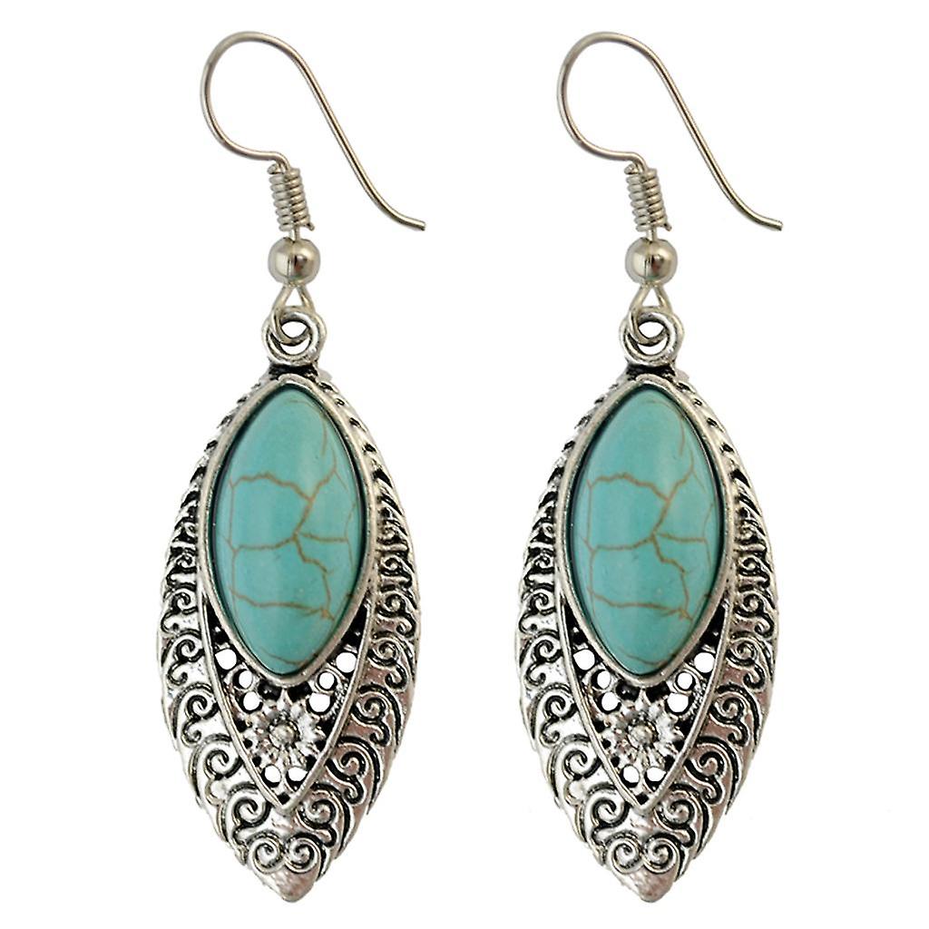 Vintage National Style Turquoise Earrings Delicate Carved Hollow Jewelry