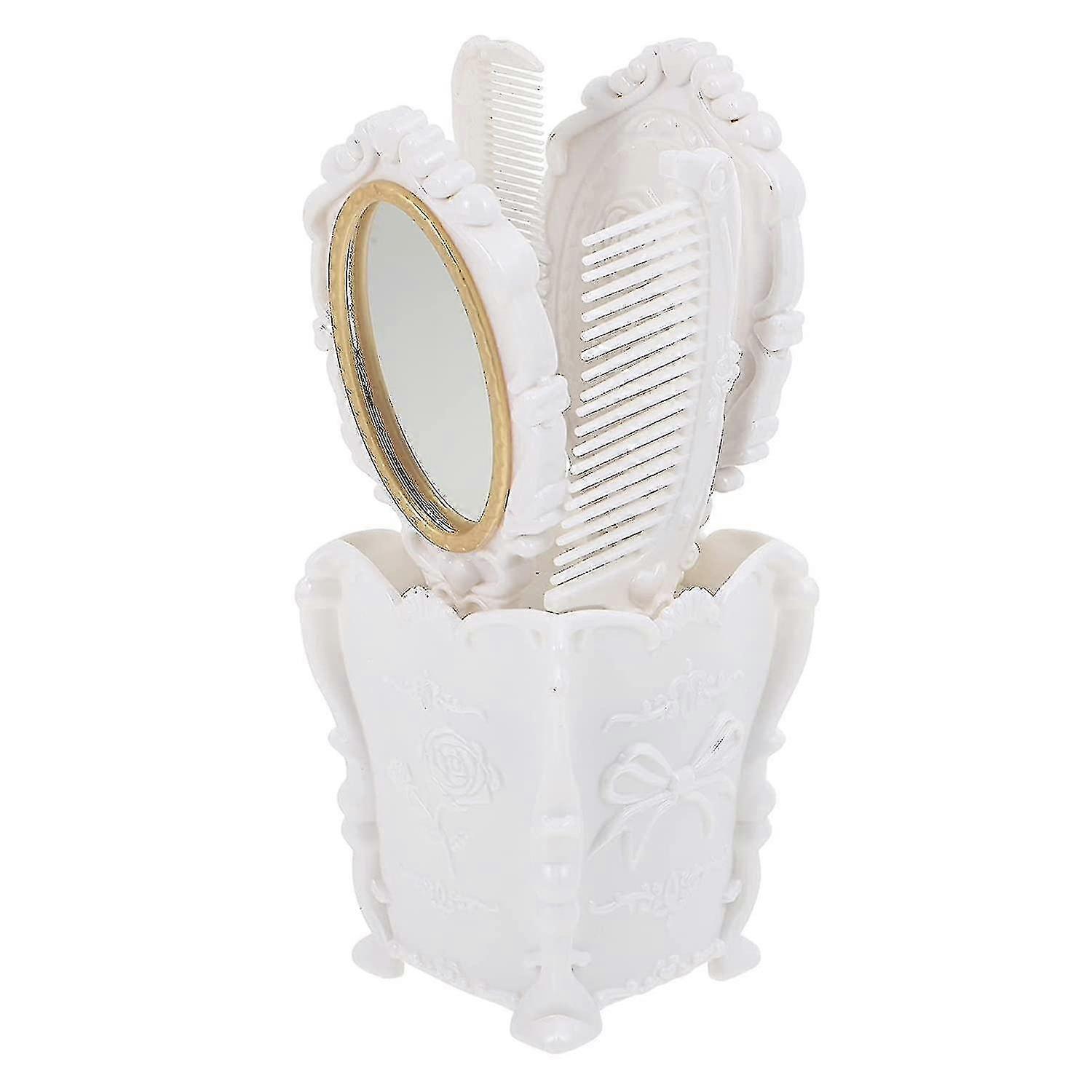 Vintage Handheld Mirror Comb Set, 5pcs Vanity Makeup Mirror Hair Brushes Comb Set Detangling Hair Brush Rat Tail Comb With Comb Holder