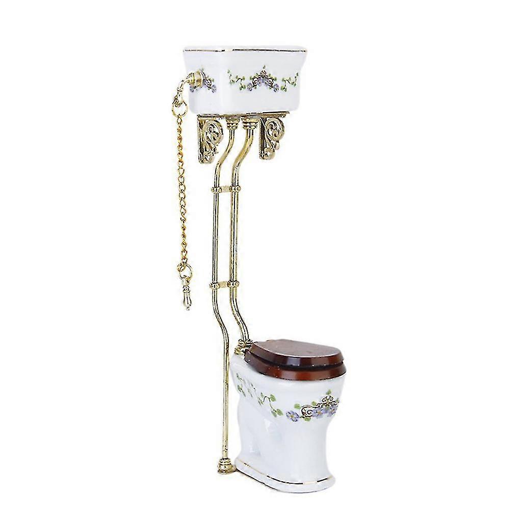 Vintage Victorian style bathroom porcelain toilet doll house miniature white + gold