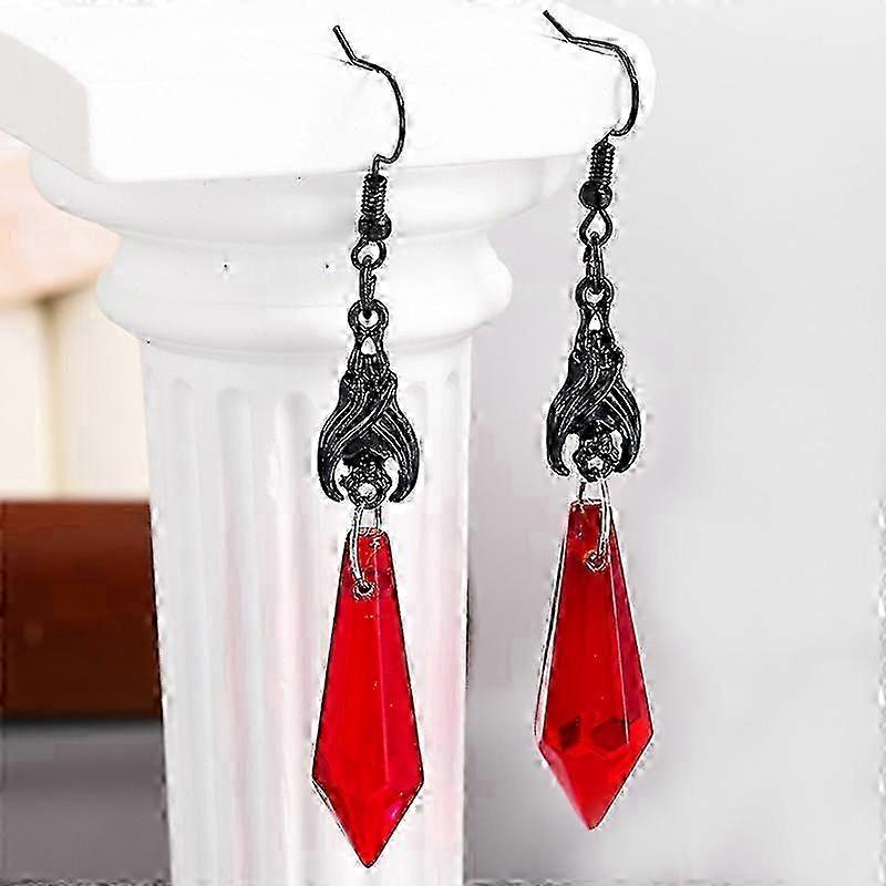 Vintage Black Bat Earrings Red Crystal Teardrop Gothic Alternative Jewelry Gothic Gift For Women New Bat Earring Lover Halloween