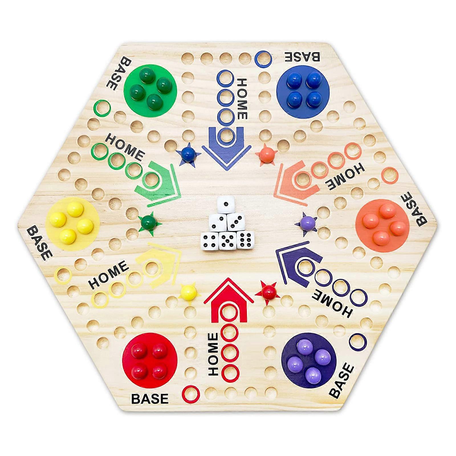 Features: Classic Aggravation Checkerboard Game: The aggravation checkerboard game is a strategic math game with double sided design, suitable for 4 or 6 players, comes with 6 colors in total 24 marble balls (4 marbles of each color), 6 x dice and 1 x checkerboard, follow the manual and learn the rule before playing,bring endless fun for familiess. Unique & Easy to Play: Our checkerboard game requires players take turn to move their marbles from base to home position get ahead of the opponents, upgraded color painted board and marbles to well tracked of your checkers throughout the game, easy to navigate & for play, especially for multiplayer. Interactive Board Game: Classic board game for multi players, 4 or 6 players, suitable for family friends gathering, kinds of parties, bars or beach games, the face to face interactive game enhance communication of each player. Math & Education Toy: The aggravation board game is great for family for time,party supply, which also a perfect board game to educate basic calculate skills, great stimulate kids brain development and strategy layout. Selected Great Qualified Material: Our aggravation game board made by qualified solid hard wood, non toxic and eco-friendly water painted, wear-resistant,equipped with holes for easy navigation of marble during for play, with durably performance to improve the for play experience. for Ideal Gift for Family & Party: for Ideal board game and gift suitable to any party gathering, classroom, vacation, family, a perfect gift for party celebration or Christmas gift for a family, moving gift, pub props as well, also is a great educational activity toy to stimulate children strategy layout and logical thinking skills. Specifications: Product Dimension: approx. Board size 38 x 33cm/14.96 x 13 inch Material: Wood Net Weight: approx. 550g/1.21 lbs Note: Please allow 1-2cm errors due to manual measurement. Due to the difference between different monitors, the picture may not reflect the actual color of the item. Package includes: 1 x Checkerboard 6 x Dices 24 x Marbles