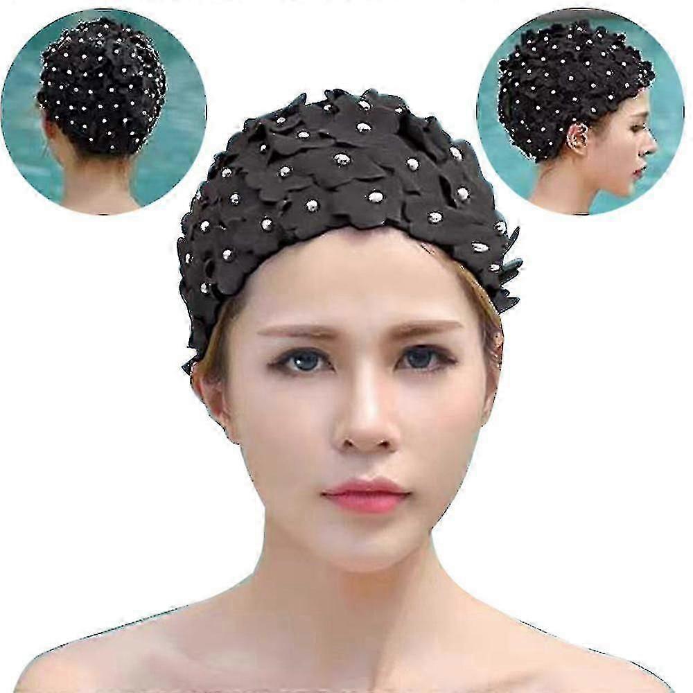Vintage Floral Swim Cap Women Stylish Swimming Cap Shower Cap Nylon Spandex Flower Bathing Cap