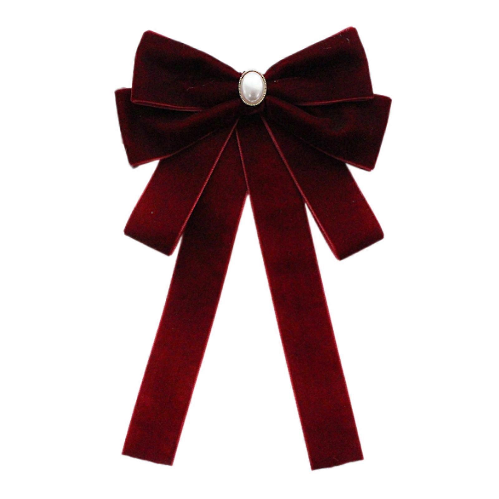 Vintage Velvets Bows Tie Brooch Pin for Women Rhinestones Pearls Uniform Pre Tied Bowknot Corsage Necktie Accessories Red