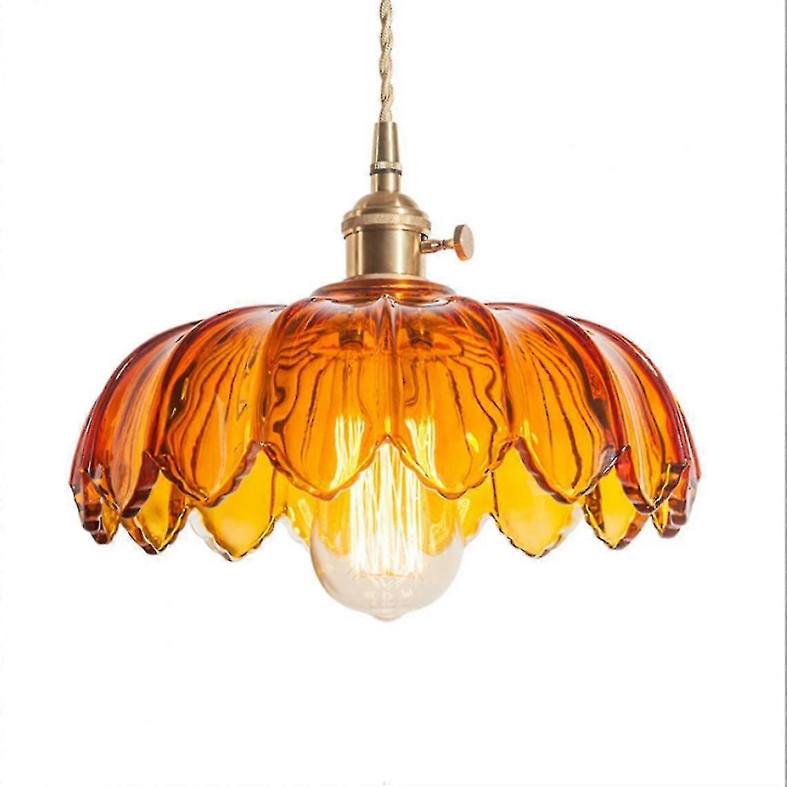 Vintage Pendant Lamp Glass Hanging Light Industrial Chandelier For Loft Coffee Bar With 9.84" Semicircle Lampshade