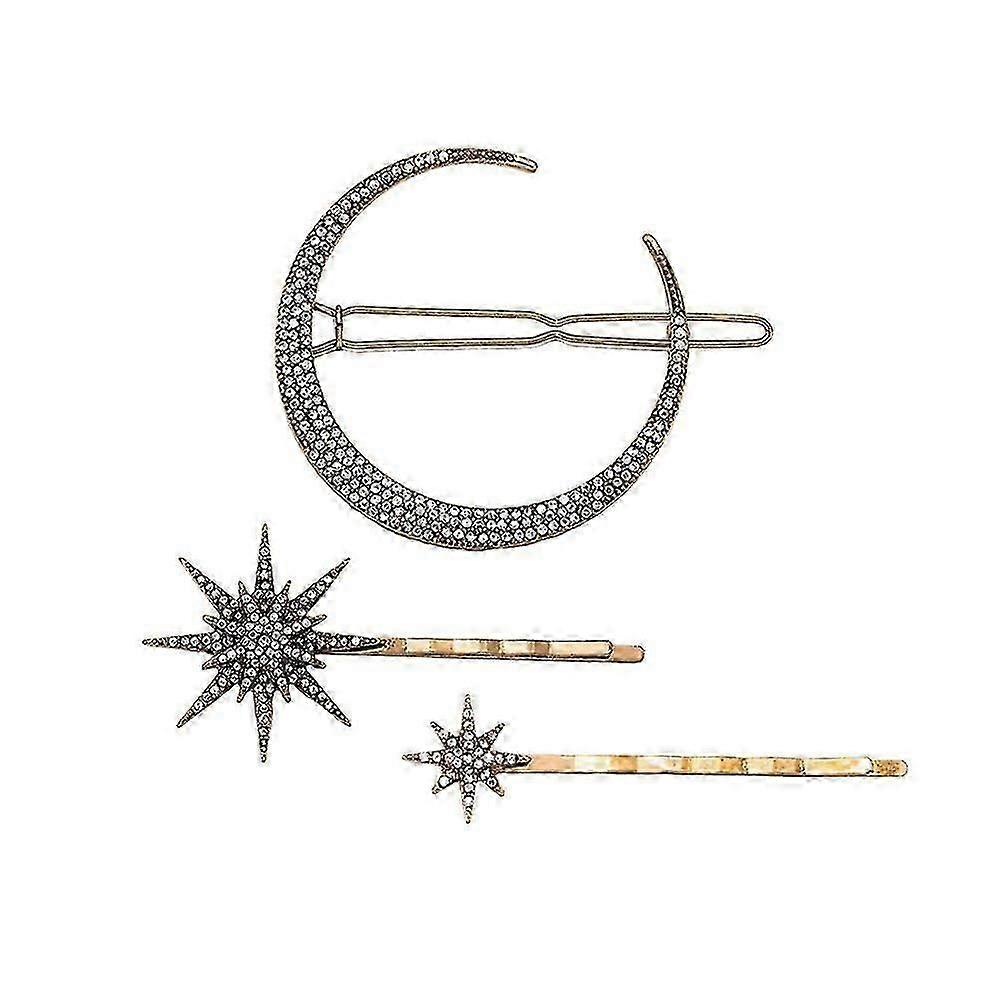 Vintage Hair Clips Set - Moon, Star & Snowflake Design Barrette Accessories for