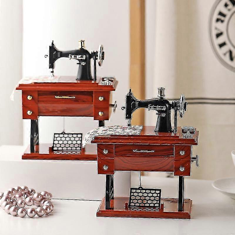 Vintage Mini Sewing Machine Retro Sewing Clockwork Music Box Gift Table Decoration Table Desk Decoration Starlight