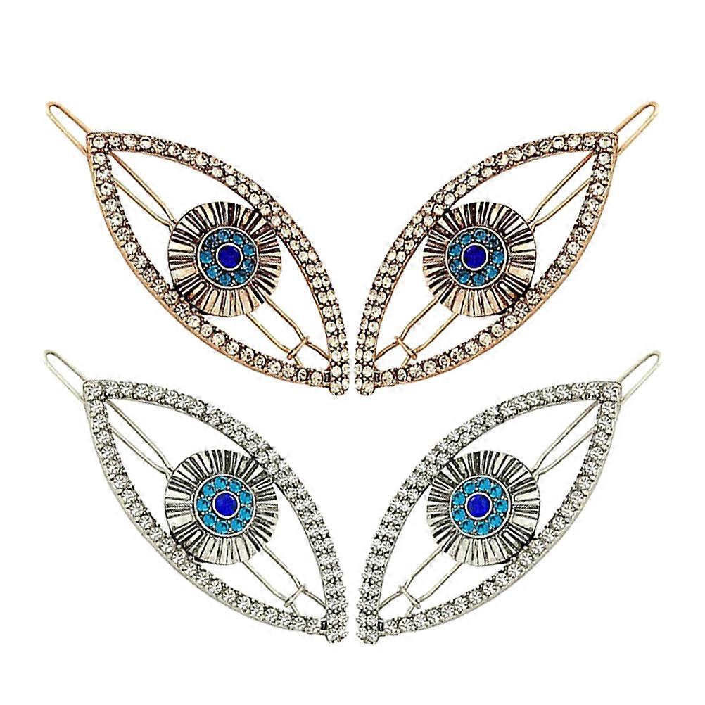 Vintage Rhinestone Evil Eye Hair Clip Gold Special Occasions Women 4Pcs