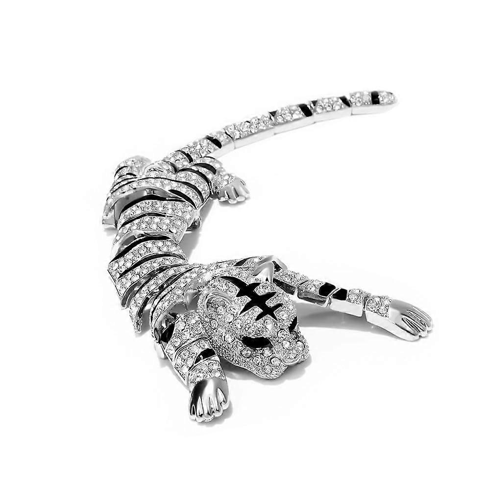Vintage Rhinestone Tiger Brooch Enamel Movable Black Stripe Climbing Vivid Unisex Animal Tiger Brooch and Pin for Men and Women Ref: 7196