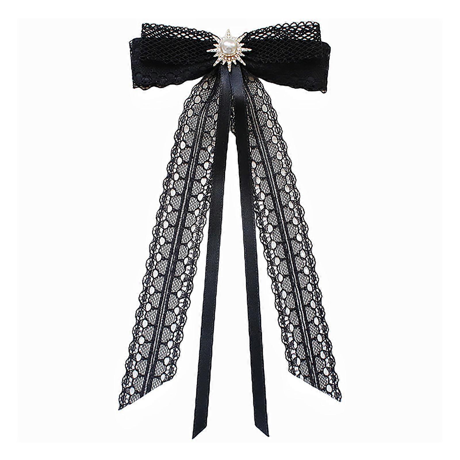 Vintage Ribbon Bows Tie Brooch Pin for Women and Girls Crystal Pearls Uniform Pre Tied Bowknot Corsage Party Accessories