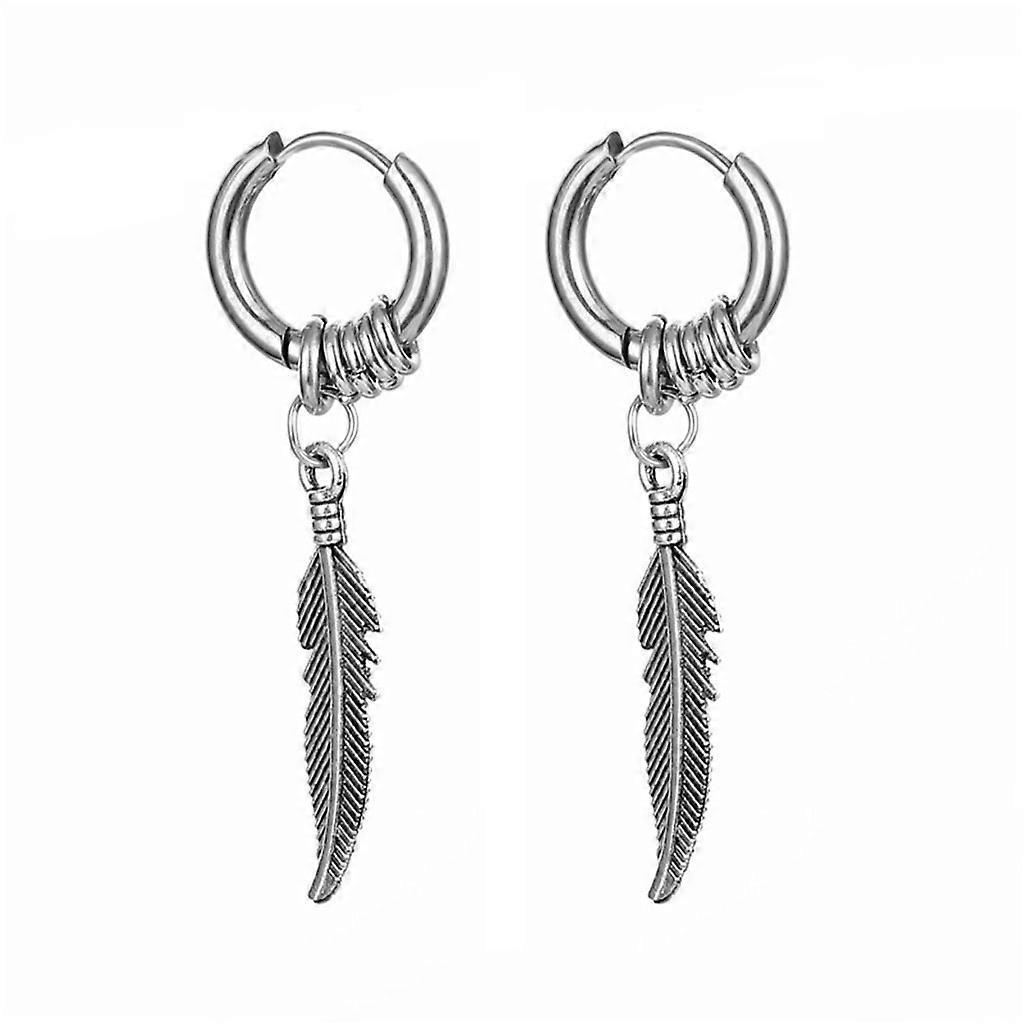 Vintage Leaf Feather Pendants Hoop Earrings Jewelry Accessories Punk Stainless