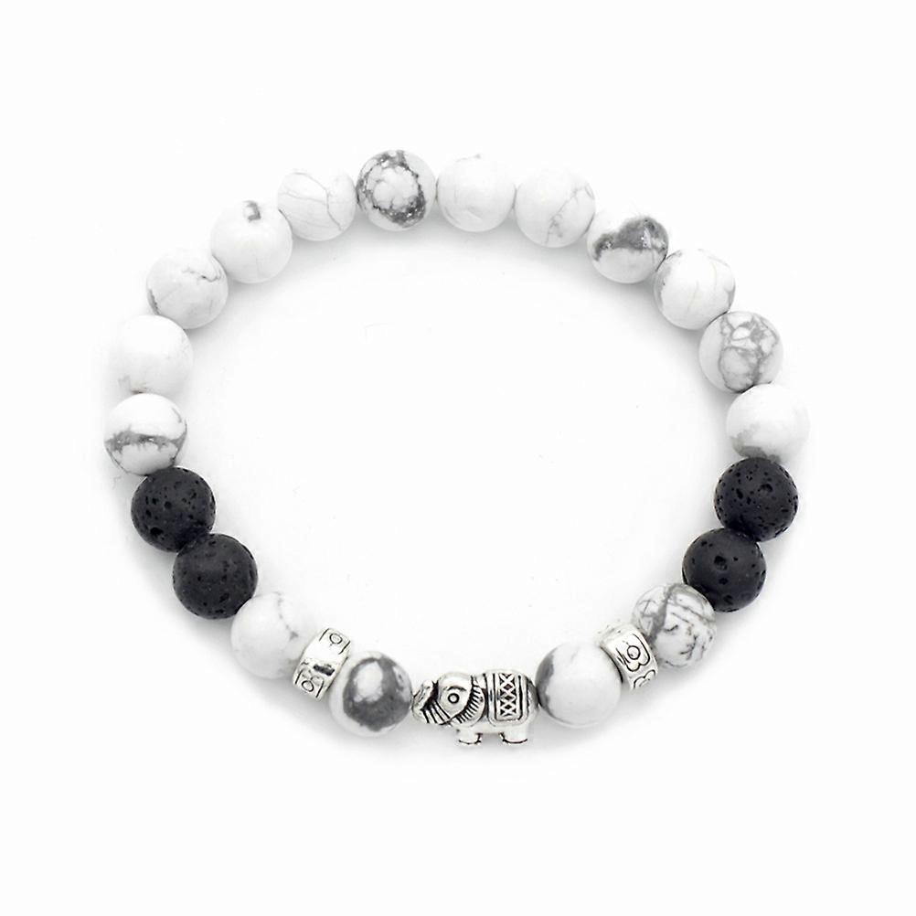 Vintage Women Stretch Bracelet Elephant Pattern White Turquoise Silver Color Simple Surface Design 1Pcs