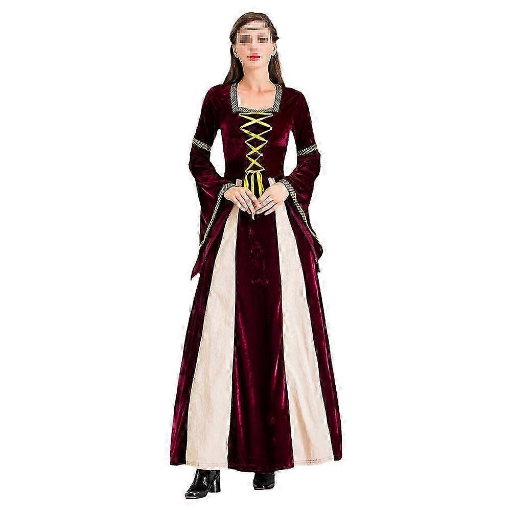 Vintage Medieval Europe Queen Dress Long Length Cosplay Victorian Costume Dancing Party Role Play Dress (Claret, Size M)