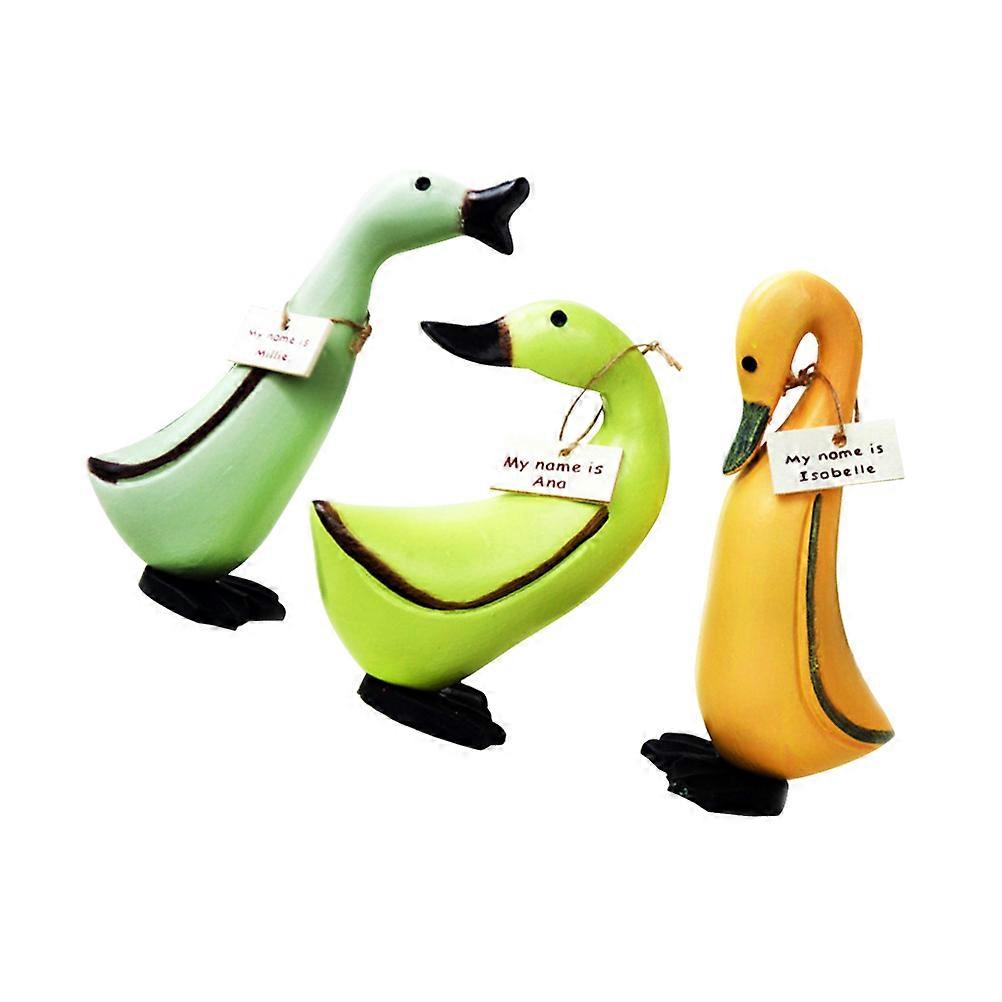 Vintage Painted Wooden Figurine Home Decoration Brown Duck Shape Miniature Ducks 3Pieces