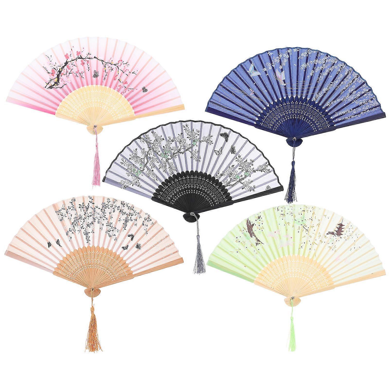 Vintage Folding Hand Fans Elegant Chinese Style, Lightweight & Portable, 5pcs Set with Assorted Designs for Dance, Home Decor