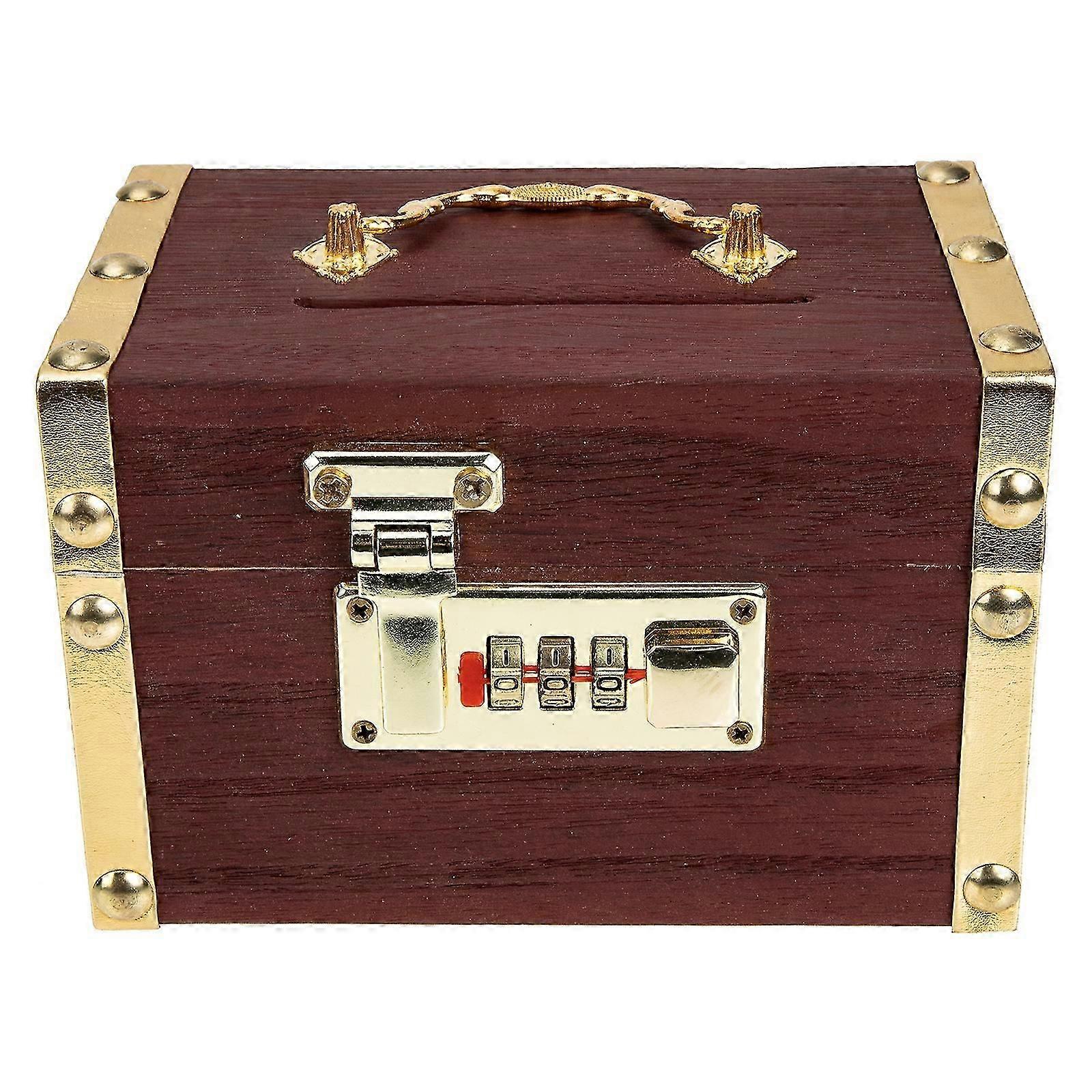 Vintage Wooden Coin Bank Coin Container Treasure Box with Lock Home Supplies