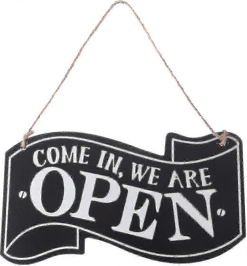 Vintage Wooden Reversible Open Closed Sign - Hanging Business Decor with Rope, Black