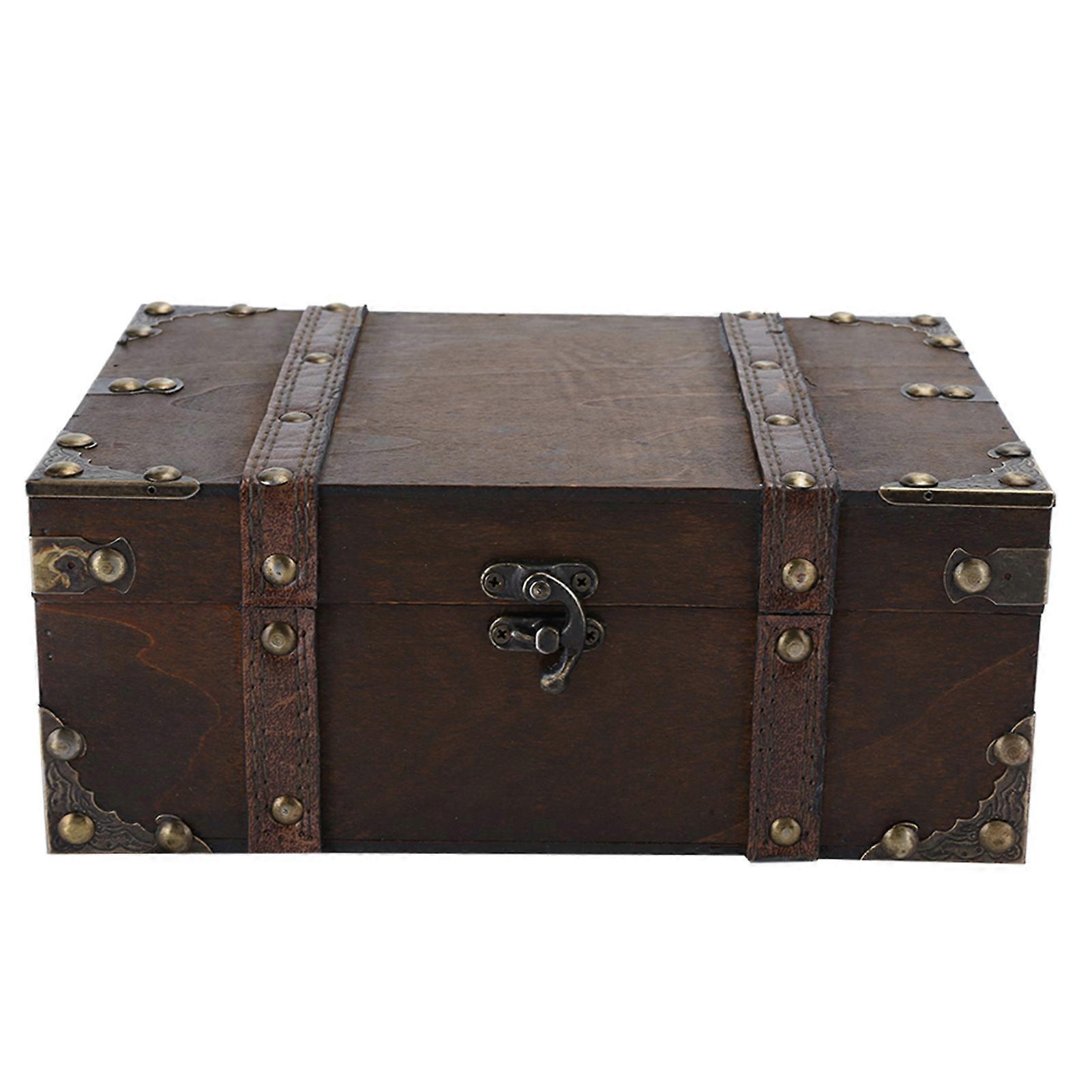 Vintage Wooden Storage Box Decorative Treasure Jewelry Chest with Lock Home Decoration