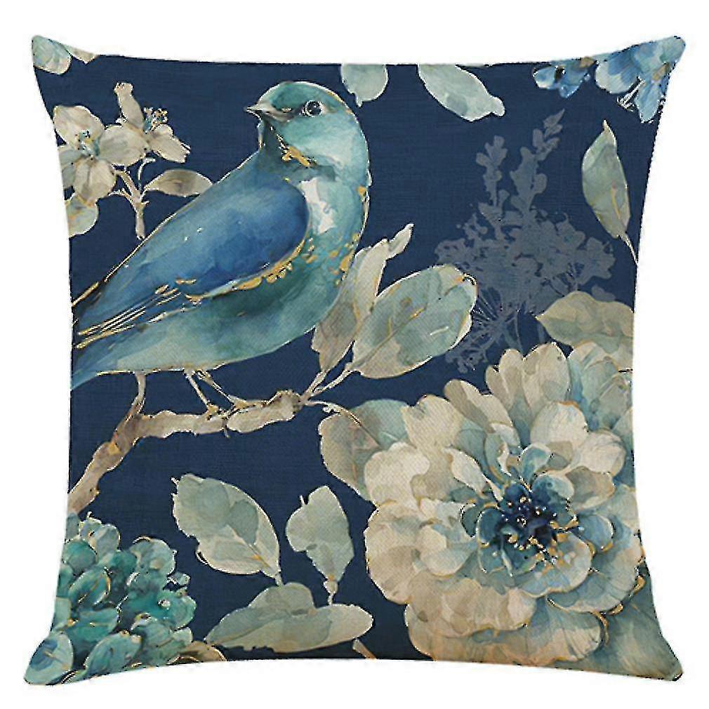 Vintage Pillowcase, Aesthetic Farmhouse Oil Painting Blue Flower Bird Butterfly Linen Square Pillow Cover, Outdoor Sofa Bedroom Room Decor