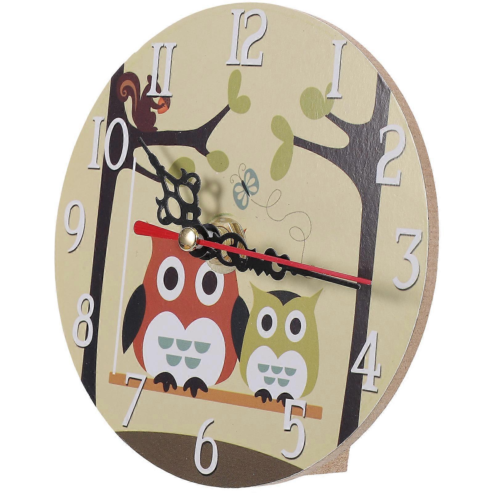 Vintage Cartoon Owl Decorative Table Clock Silent Mute Non Ticking Desk Clock for Bedroom Living Room Home Office Stylish Timepiece