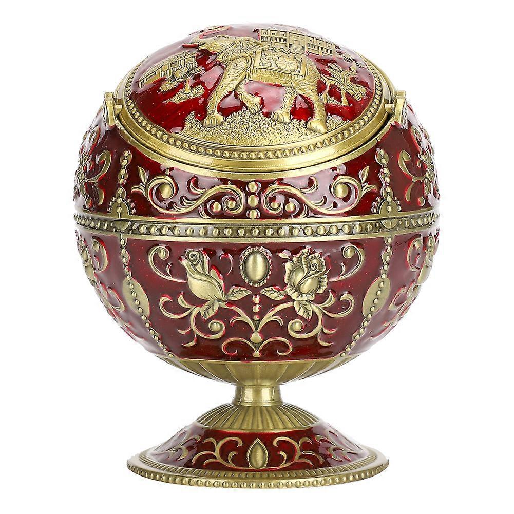 Vintage Ashtray Tellurion Shape Elegant Pattern Zinc Alloy Wine Red with Cover Craft Gift