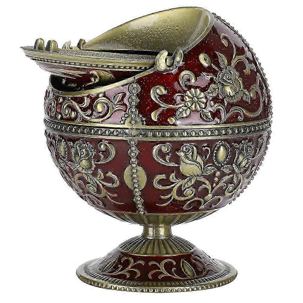 Vintage Ashtray Dragon Pattern Zinc Alloy with Lid Windproof Home Decor Craft