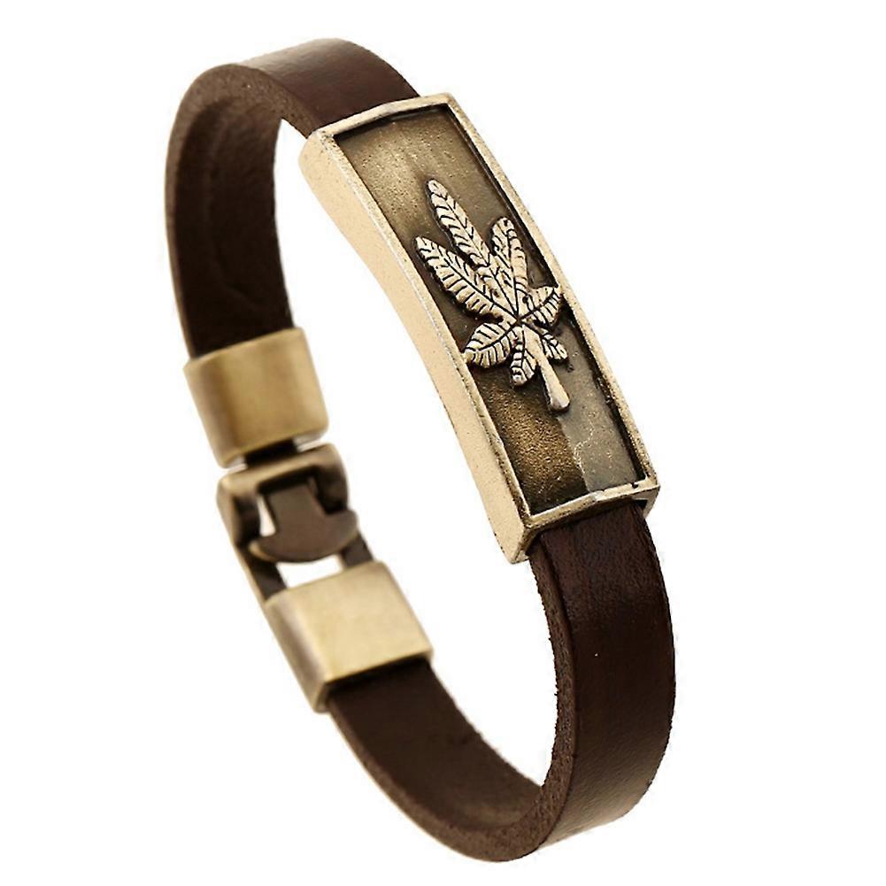 1. Made of cowhide material, which is durable, anti-allergy and comfortable. 2. Punk style with alloy maple decor, fashionable and exquisite. 3. Suitable for holiday, daily use and other occasions. 4. Great gift for your friends, family and just for yourself. 5. Great decoration for your hand, which will make you more graceful.