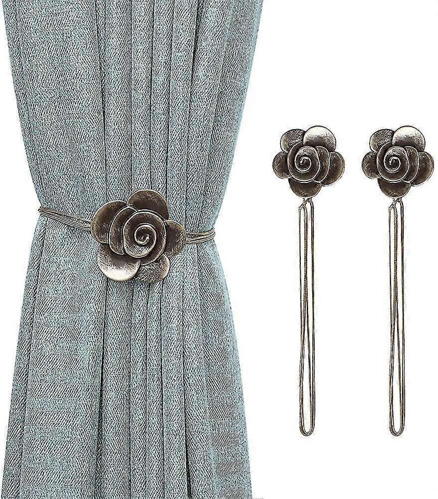 Vintage Magnetic Curtain Tiebacks. Metal Curtain Holder Camellia Buckles Rear2pcs