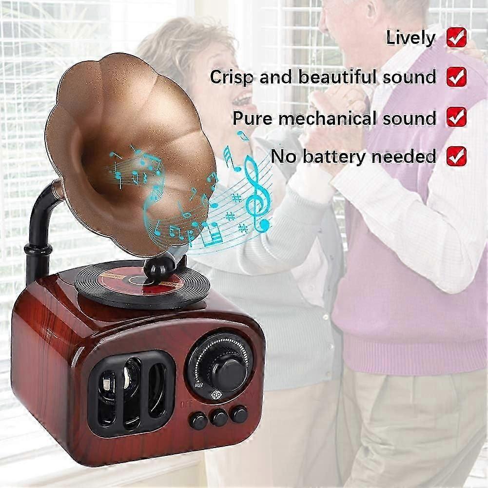 Vintage Phonograph Music Box, Retro Mechanical Desktop Decor, Elegant Musical Gift