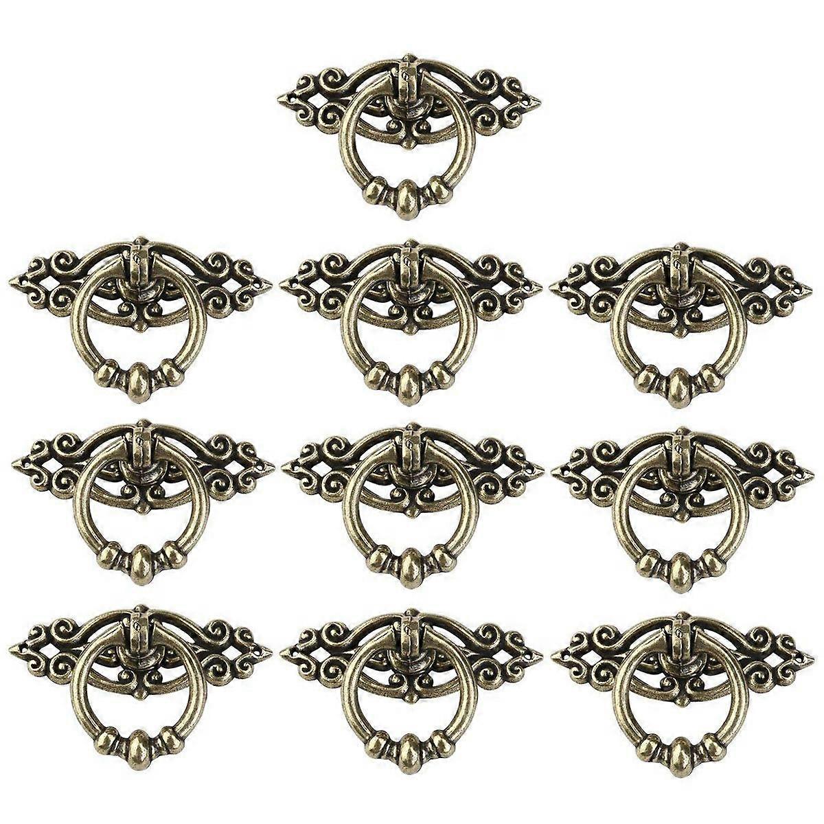 10Pcs Vintage Kitchen Cabinet Cupboard Dresser Door Drawer Ring Pull Handles Knobs (Antique Brass)