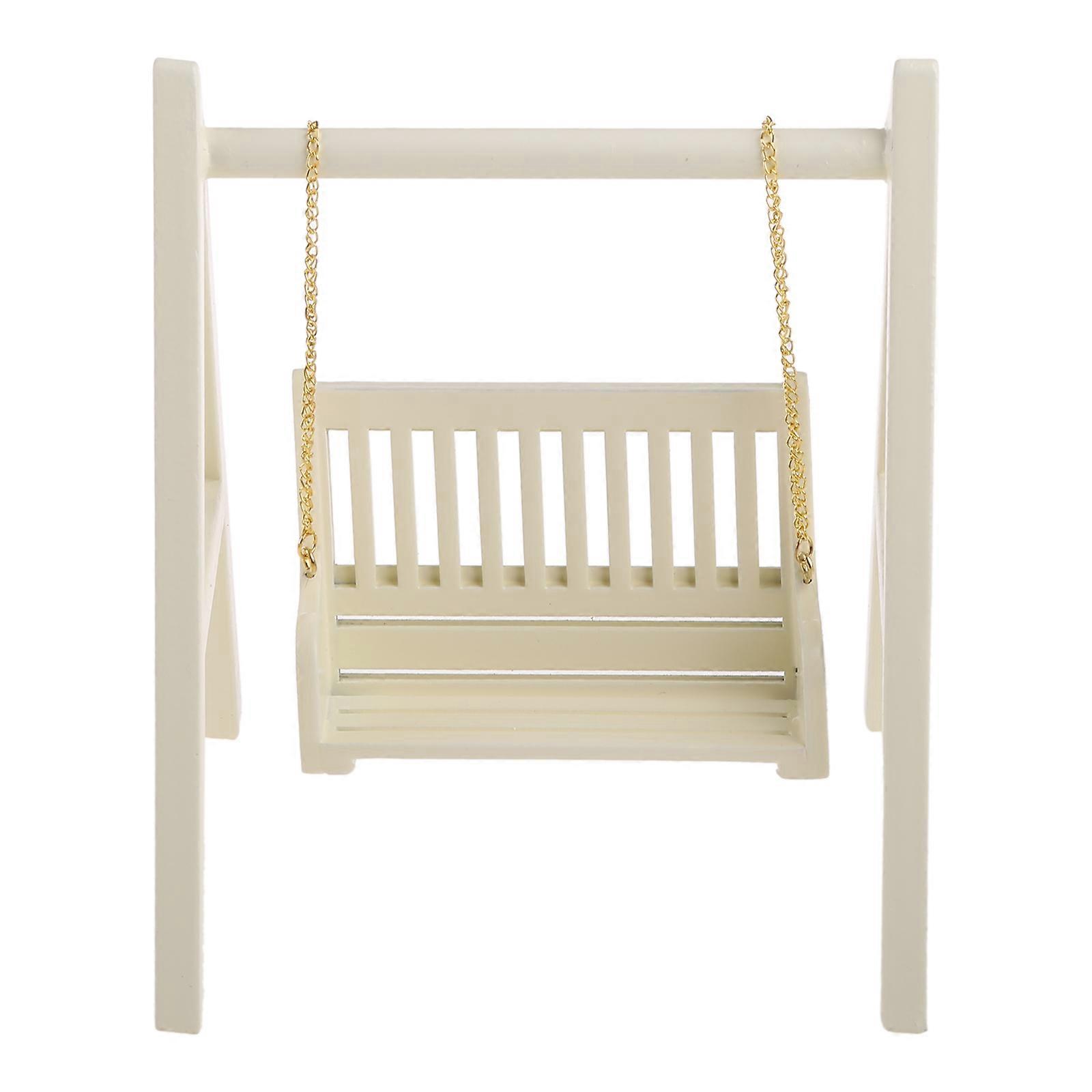 Vintage 1/12 Exquisite Miniature Wooden Porch Swing for Garden for Doll House Decorations Craft Kids Pretend for Play To Ivory