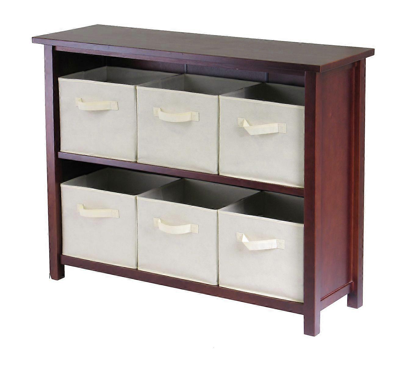 Verona 2-Section W Storage Shelf with 6 Foldable Beige Fabric Baskets