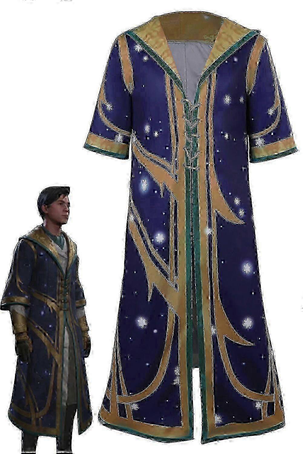 Wizard Merlin Cosplay Cloak Men Costume Game Legacy Role Play Outfits Hooded Robe Fancy Dress Up Party Cloth Disguise, Happy H