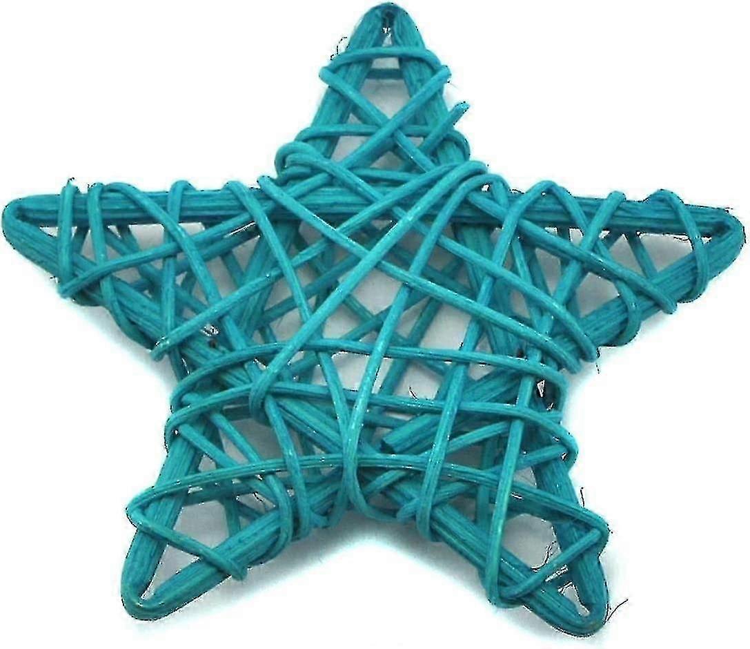 Wicker Rattan Stars For Home Garden Wreath Tree Decoration (9cm, Light Blue)