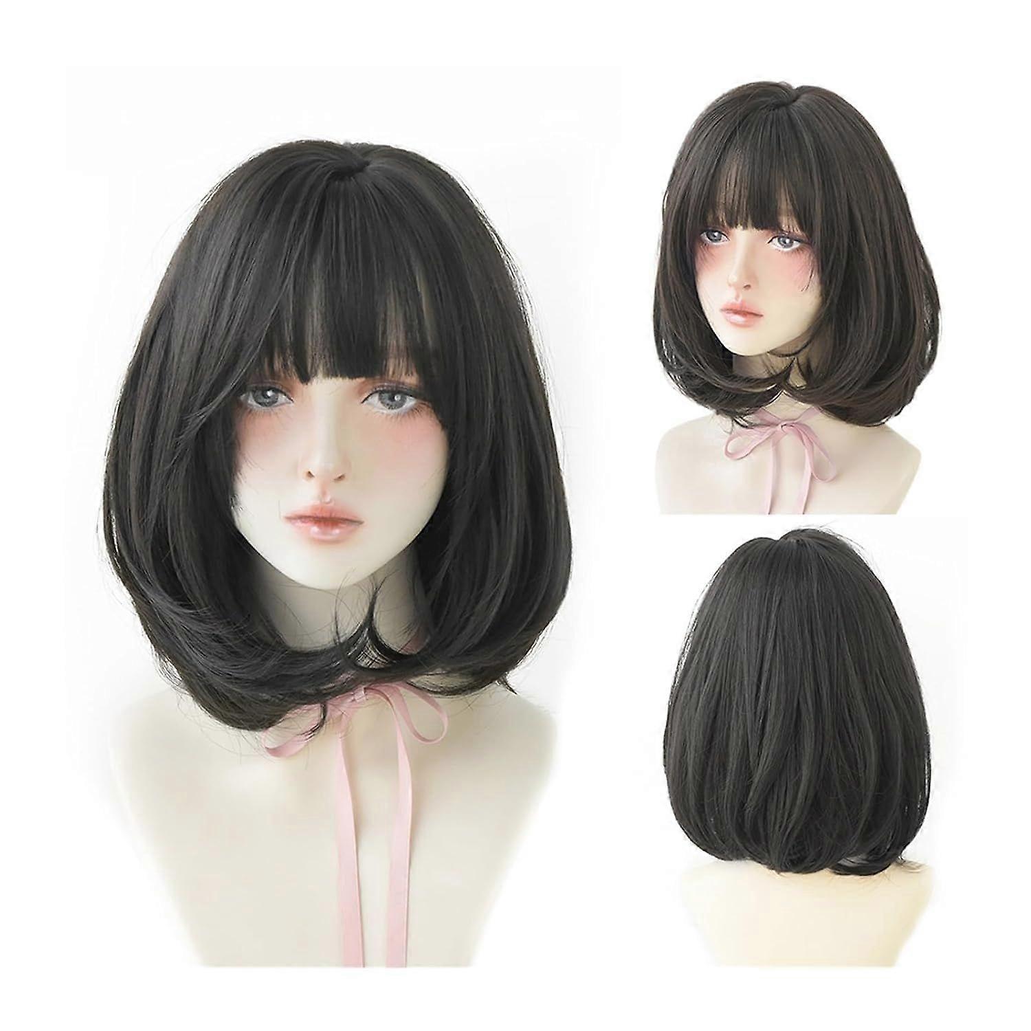 Wig, Wig Black Natural Short Wigs Straight Wigs with Bangs Brown Pink Synthetic