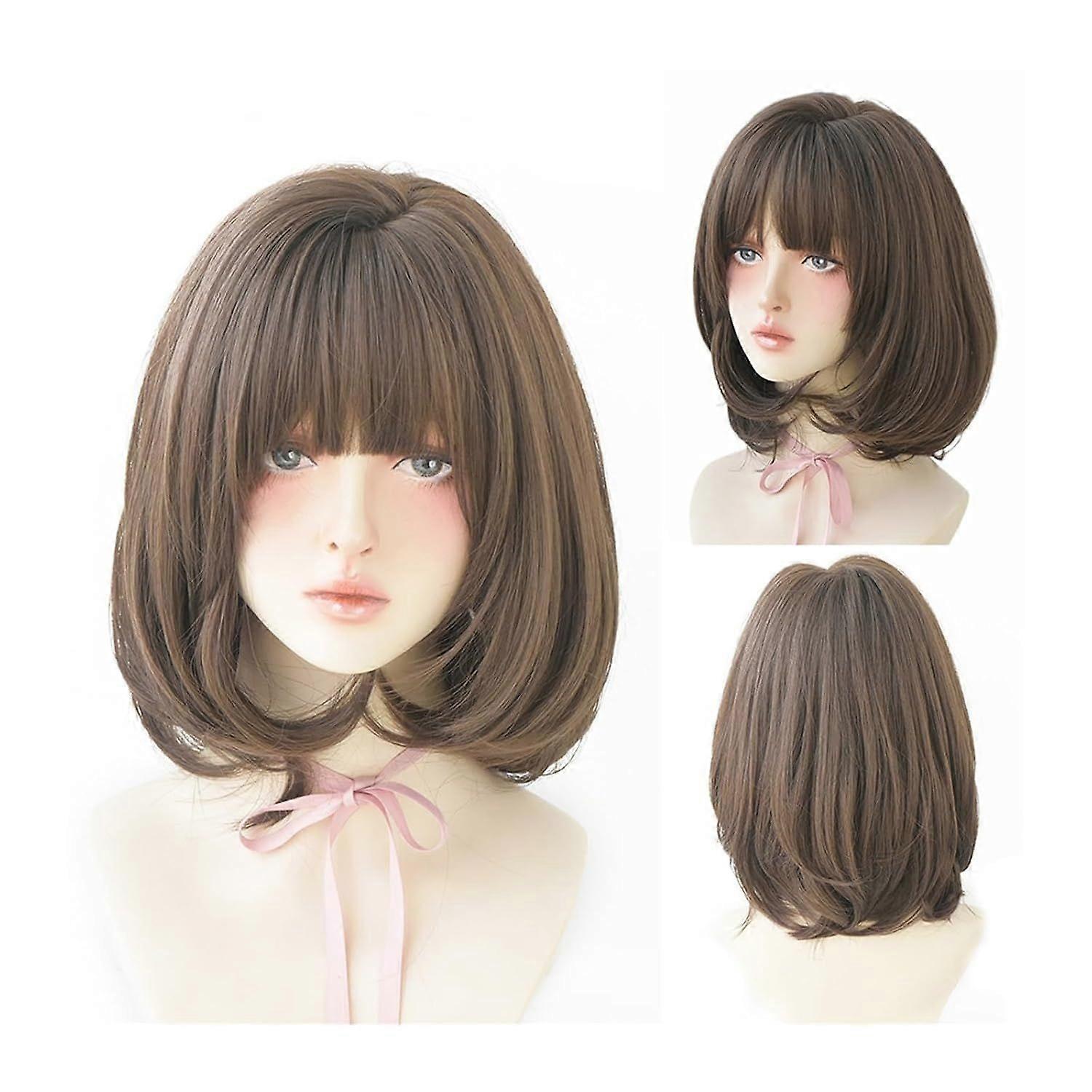 Wig, Wig Black Natural Short Wigs Straight Wigs with Bangs Brown Pink Synthetic
