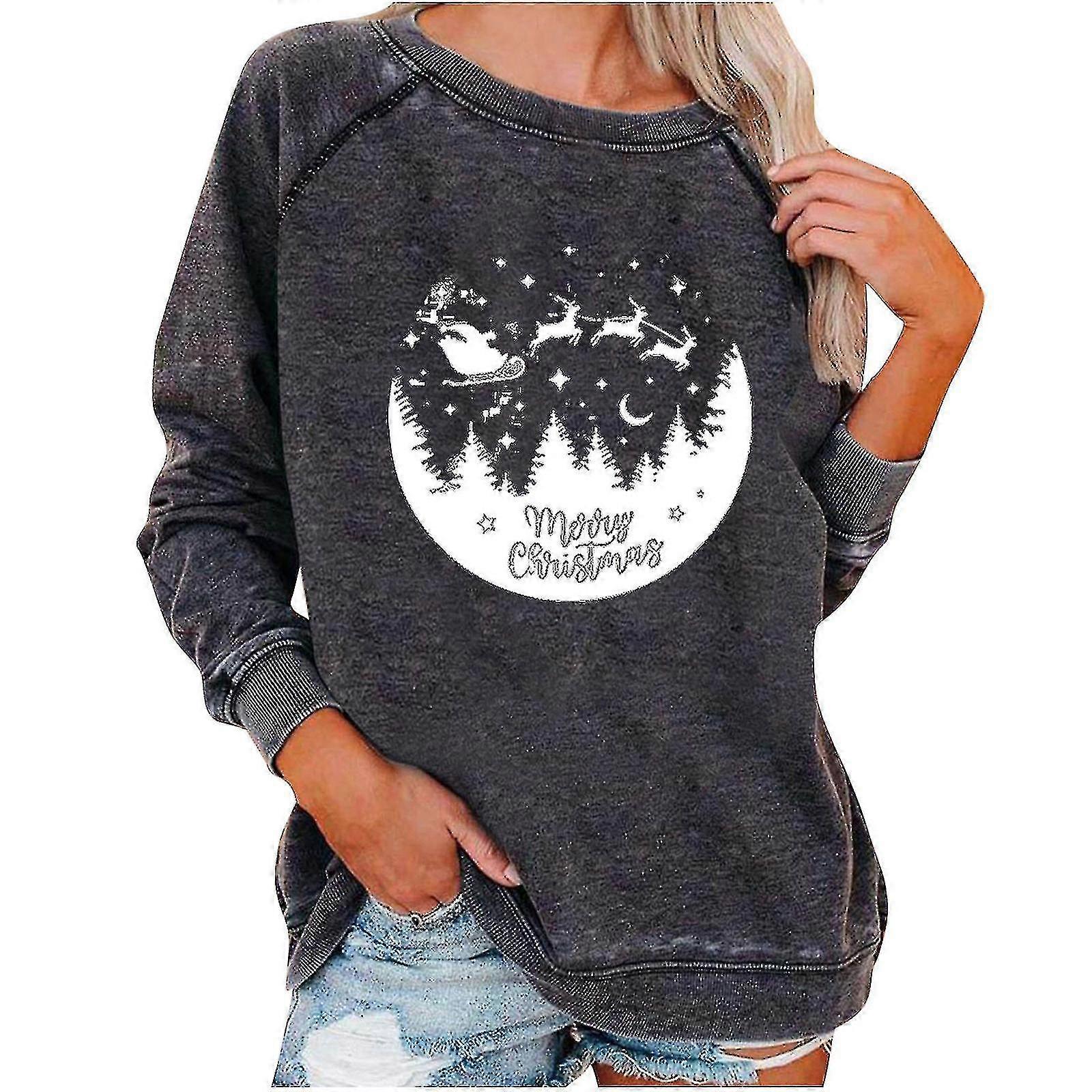Women Printed Pulr Sweatshirt Sleeve Xmas Casual Tops Grey