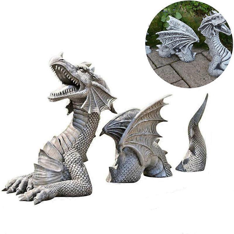 Flying Dragon Statue with Wing Garden Art Resin Craft Ornament LandscapingWhite