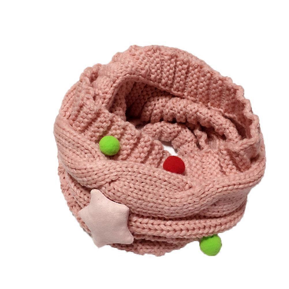 Winter Scarf Kids Scarf for Kids with Star Pom Ball Pink Knit