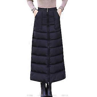 ウィンターダウンコットンスカートハイウエストジップアップロングウォームスカート厚く女性Aラインスカート