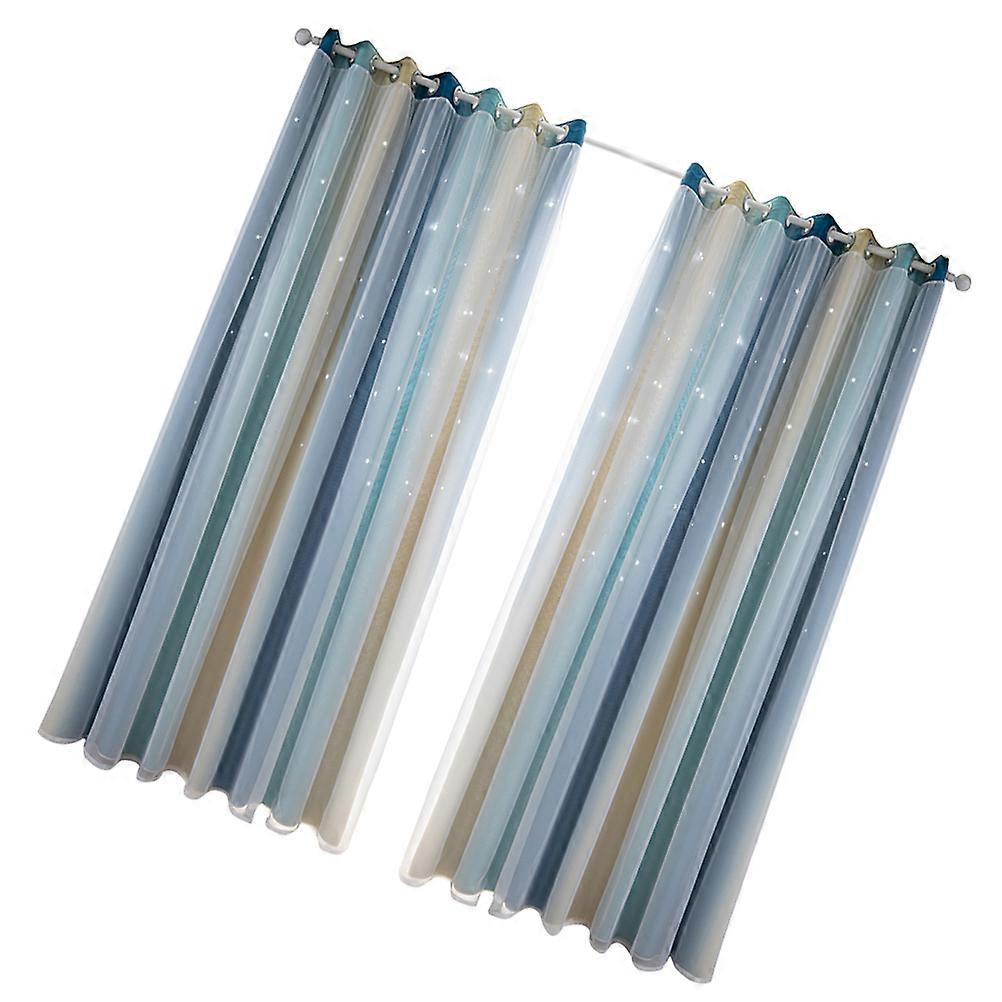 Window Treatments 2Pcs Double-Layer Gradient Color Tulle Curtains Blue For Sunshade And Privacy In Living Room And Bedroom