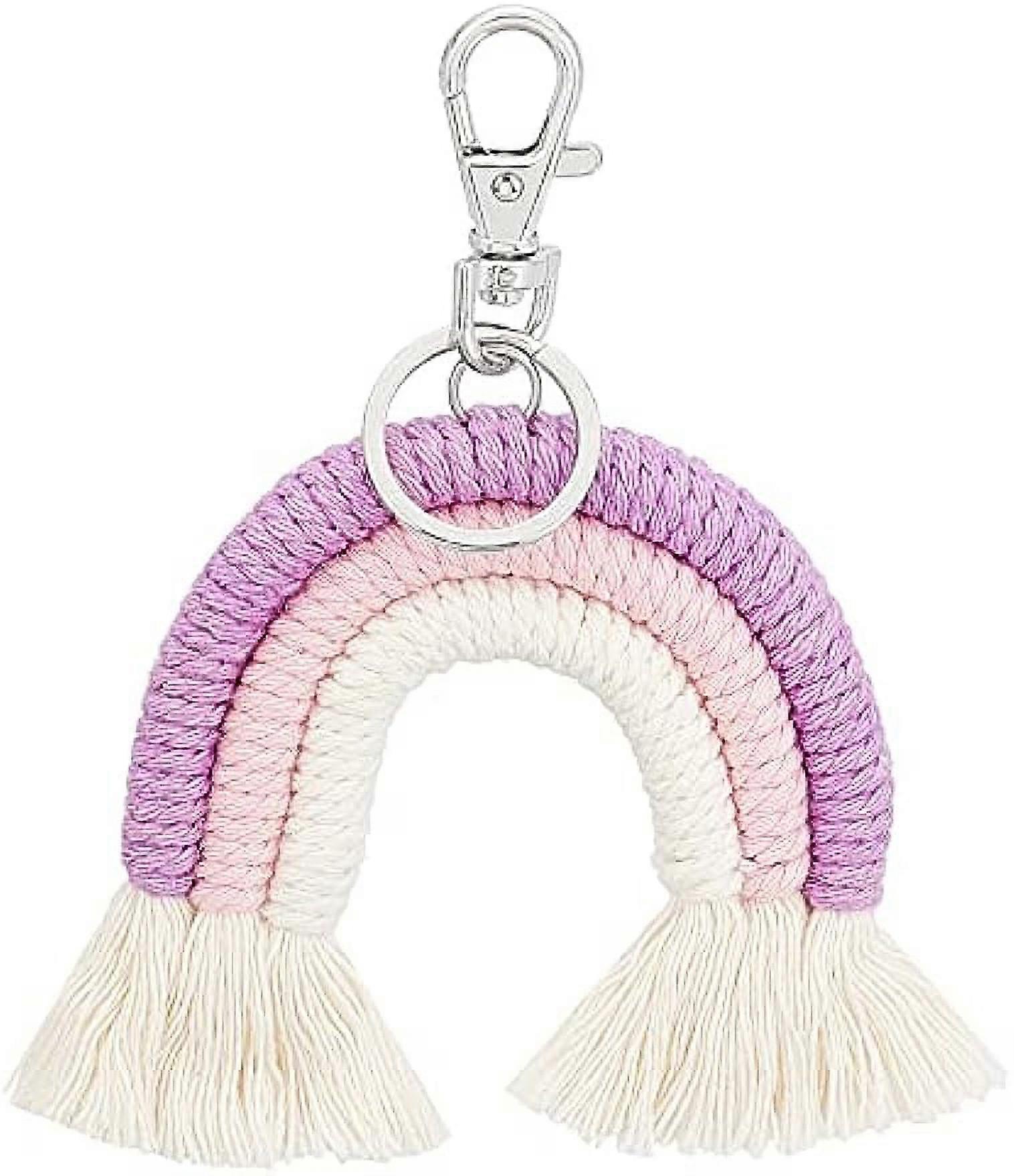 Weaving Rainbow Keychain Macrame Rainbow Tassel Charm Boho Rainbow Tassel Keychains