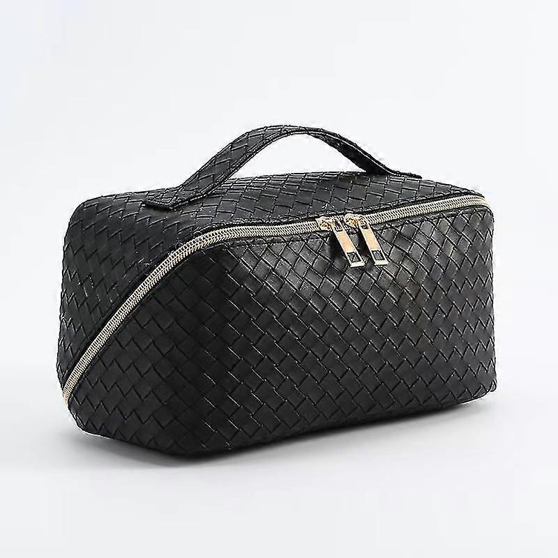 Weave Makeup Bag,cosmetic Bag Leather Woven Cosmetic Travel Bag Double Layer Makeup Bags For Women Makeup Pouch Portable Zipper Bags Gifts