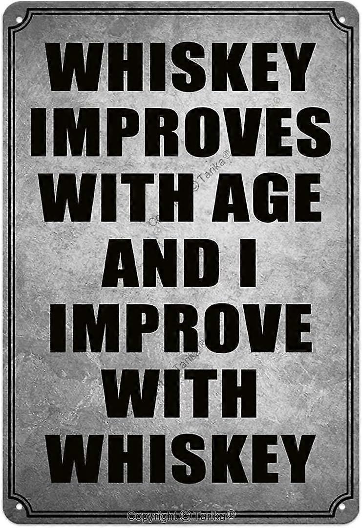 Whiskey Improves with Age and I Improve with Whiskey Iron Poster Painting Tin Sign Vintage Wall Decor for Cafe Bar Pub Home Beer Decoration Crafts