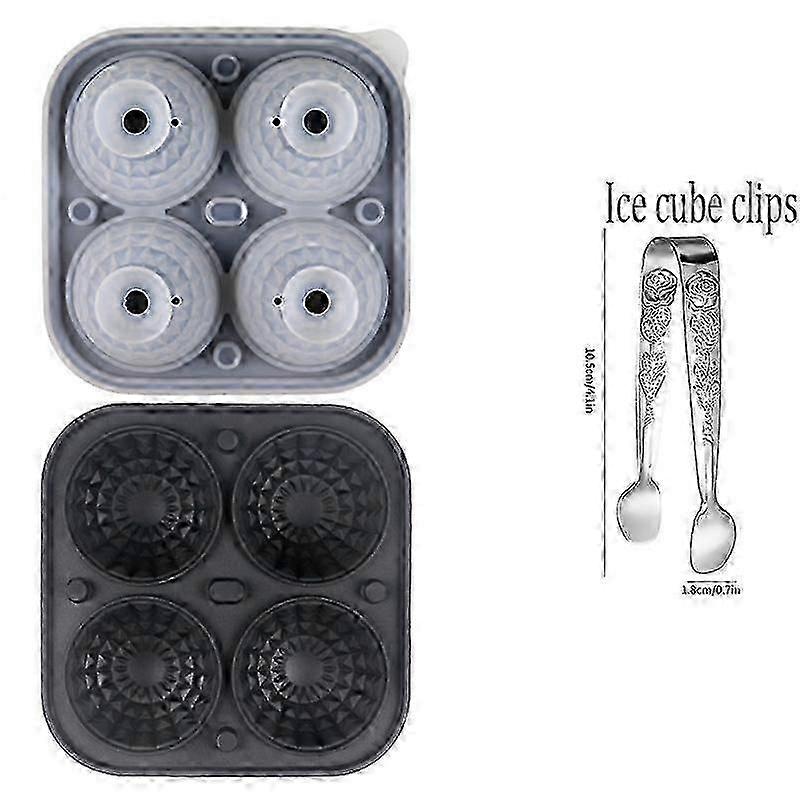4 Grid Large Silicone Ice Mold with Clips for Whiskey Cocktails - Round Black
