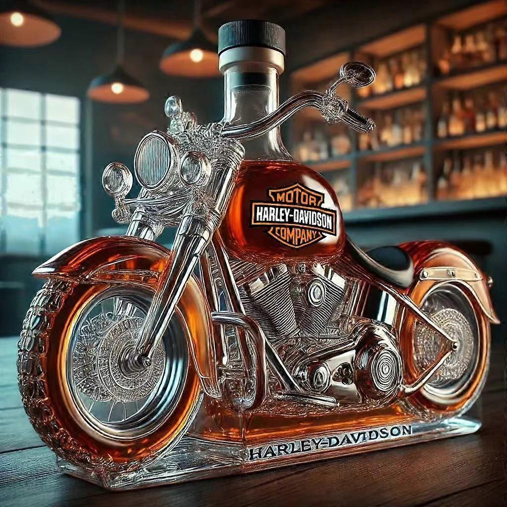 Whiskey Bottle Motorcycle Shape 11 oz Novelty Glass Decanter 3D Engraving