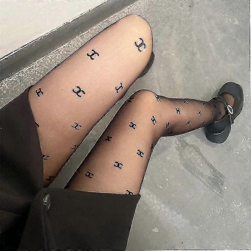 way Double Letter CC Transparent Slim Pantyhose - Sexy Fishnet Stockings, Party Club Black Tights Stocking