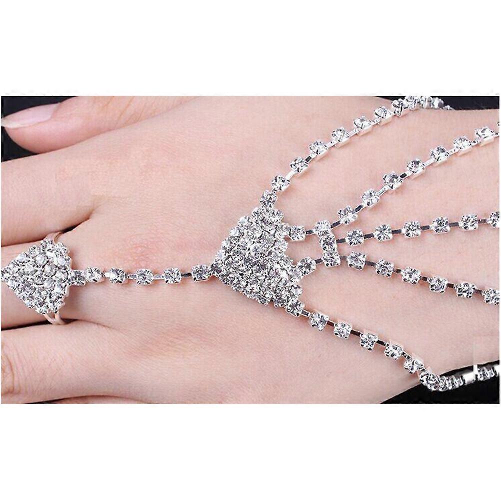 Wedding Accessories Rhinstone Bridal Bracelet with Ring for Special Occasions Multi Color 1Set